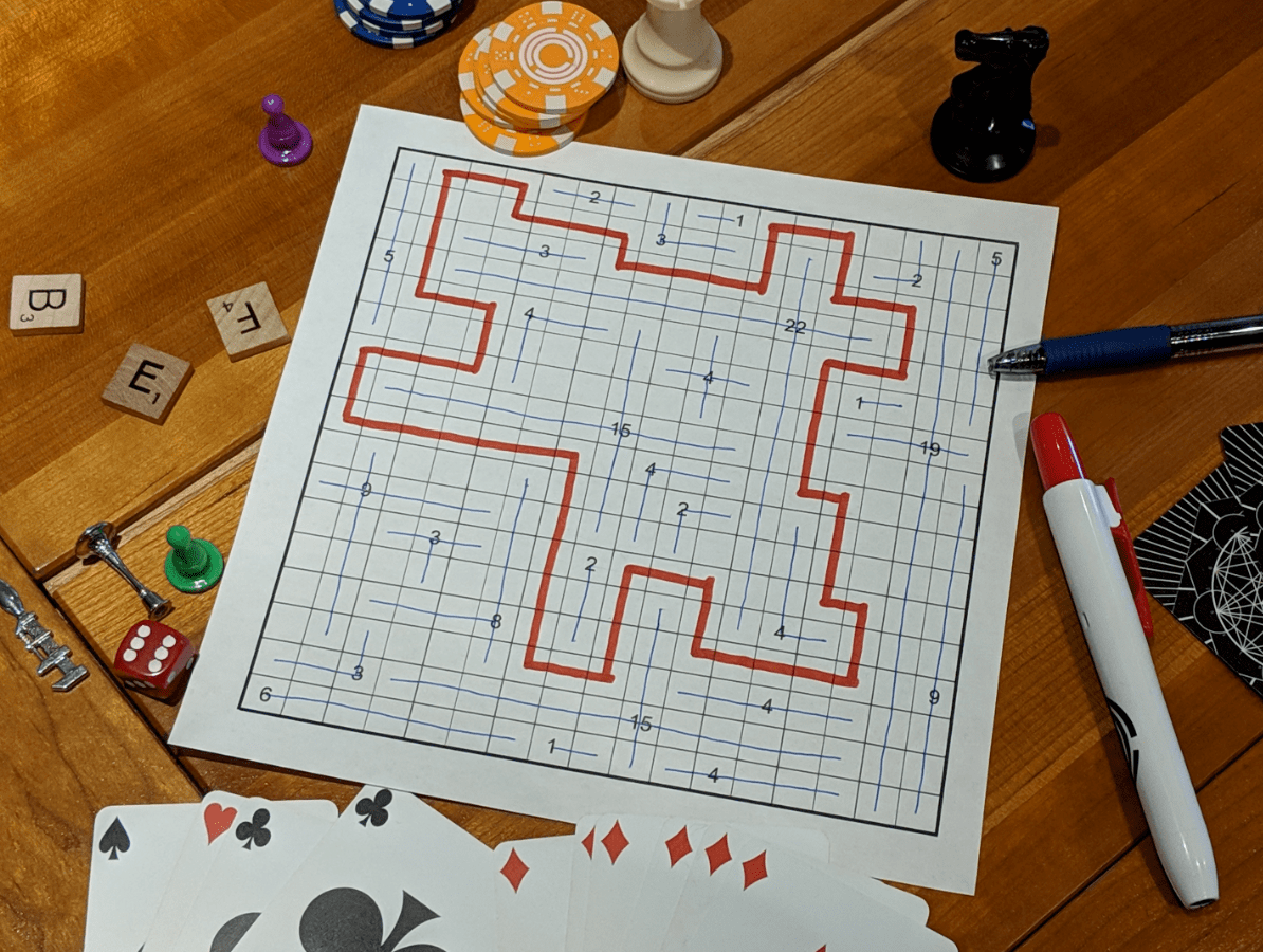 The unique configuration that works is shown above. The product of the lengths of the fences inside the loop is 10,077,696. Nicely done, solvers!