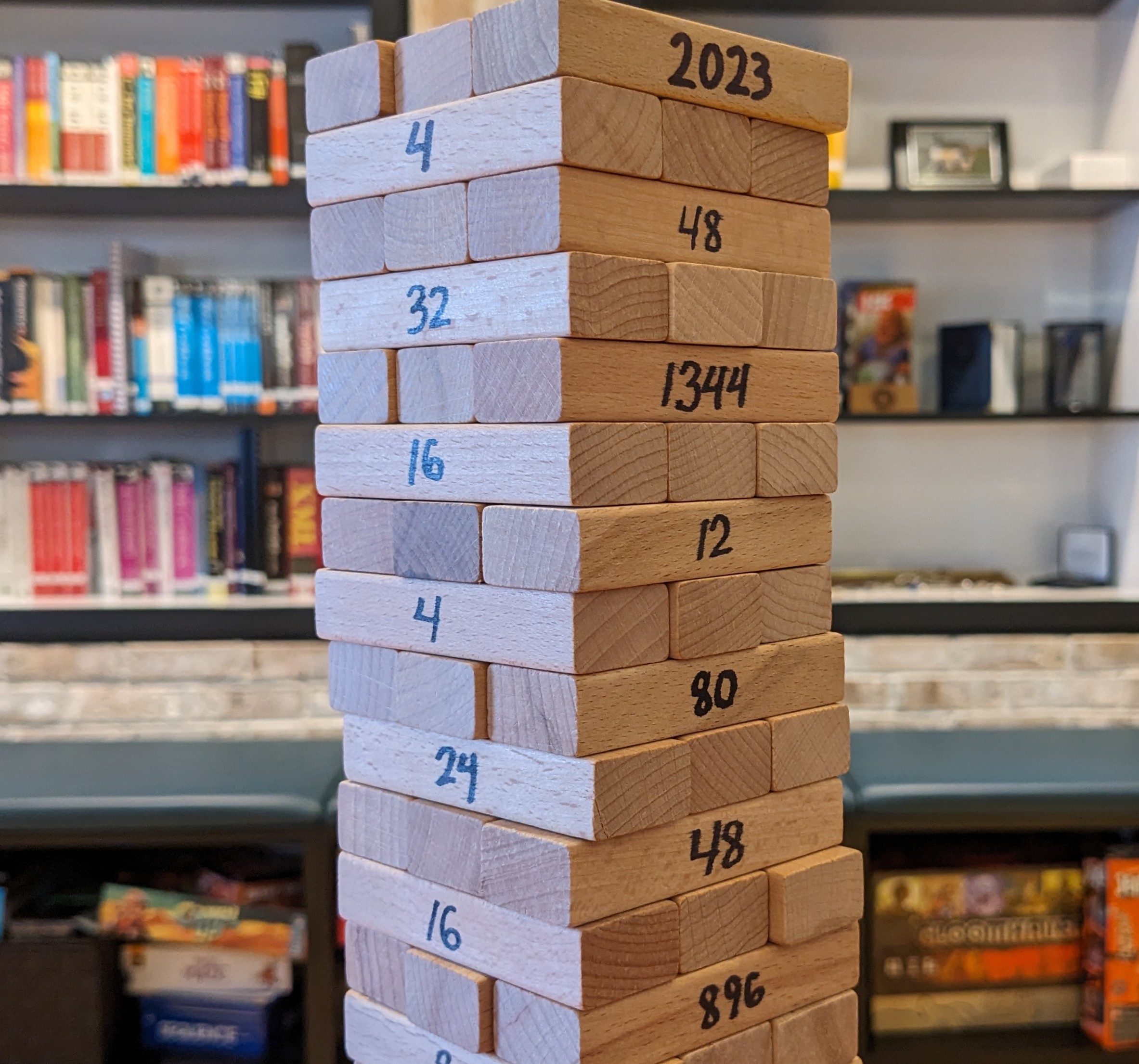 The casework involved in solving for the least such n is fairly interesting; we’d love to share it but we’ve just been told we need to disassemble the tower tout suite to clear away table space for the research team’s daily game of Campaign for North Africa. Gotta go!