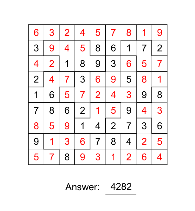The answer to May 2017’s puzzle is 4282, and the completed puzzle is presented here. Congratulations to everyone who submitted the correct answer!