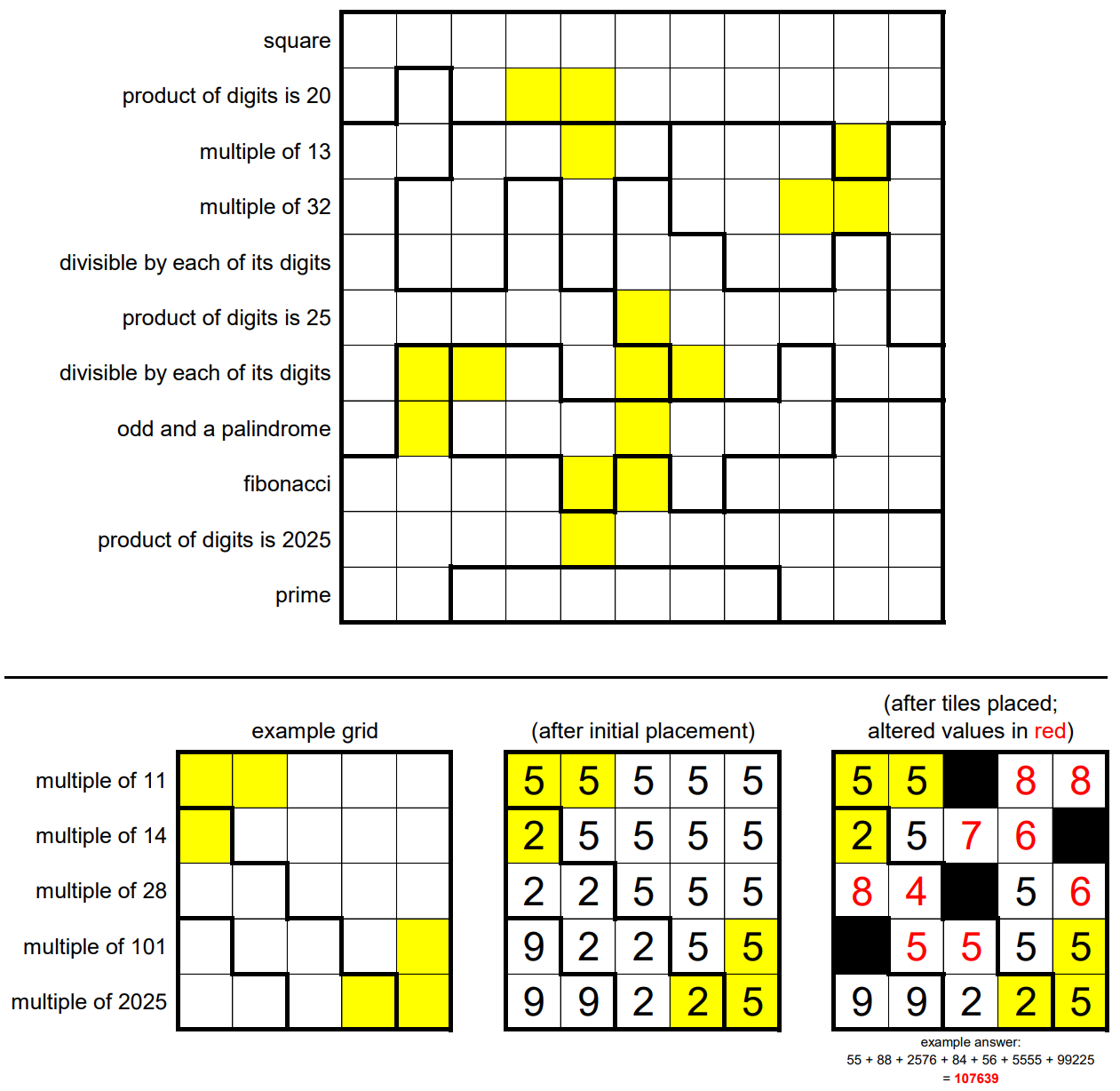The answer to this month’s puzzle is the sum of all the numbers formed in the completed grid. (As in the example.)