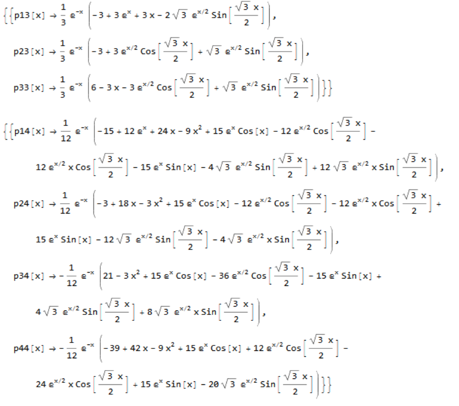 In particular we have P4,4(1) = (-5/4)*(cos(1) + sin(1)) + (1/2)*e-1 + (e-1/2)*(cos(sqrt(3)/2) + 5/sqrt(3)*sin(sqrt(3)/2)), or approximately 0.18343765086.