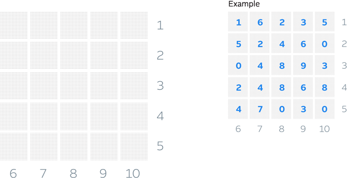 Place a digit in each of the 25 spots in the below 5×5 grid, so that each 5-digit number (leading zeroes are ok) reading across and reading down is divisible by the number outside the grid, trying to maximize the sum of the 25 numbers you enter. An example of a completed grid with sum 100 is presented on the right.