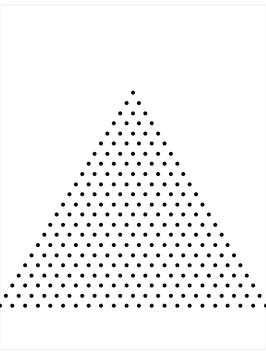Consider an equilateral triangular grid of dots with N rows, such as the one presented here (with N = 22). A “triad” is a set of 3 dots where each dot in the triad borders the other two. The top two rows the triangular grid form a triad; all triads are (rotations of) precisely this shape.