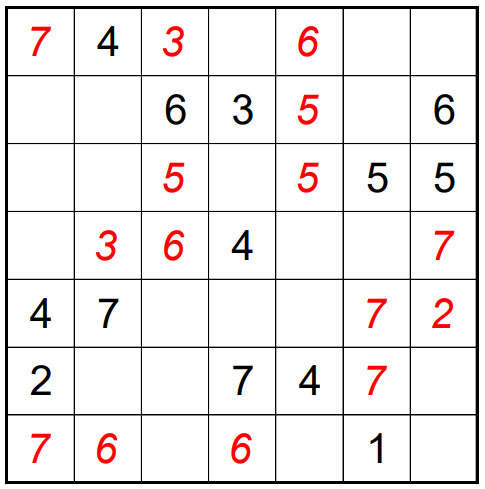 The completed grid is shown above. The product of the areas of the regions of blank squares is 240.